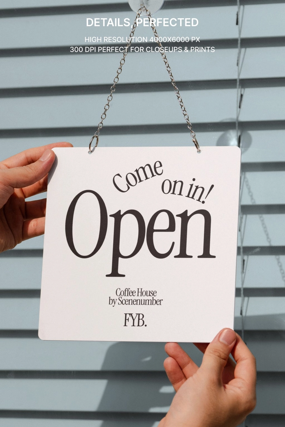 This S#4 FYB Door Signage 02 Mockup is available as a layered PSD file and is easy to customize. You can insert your door sign design through the embedded Smart Object and adjust the blind color.