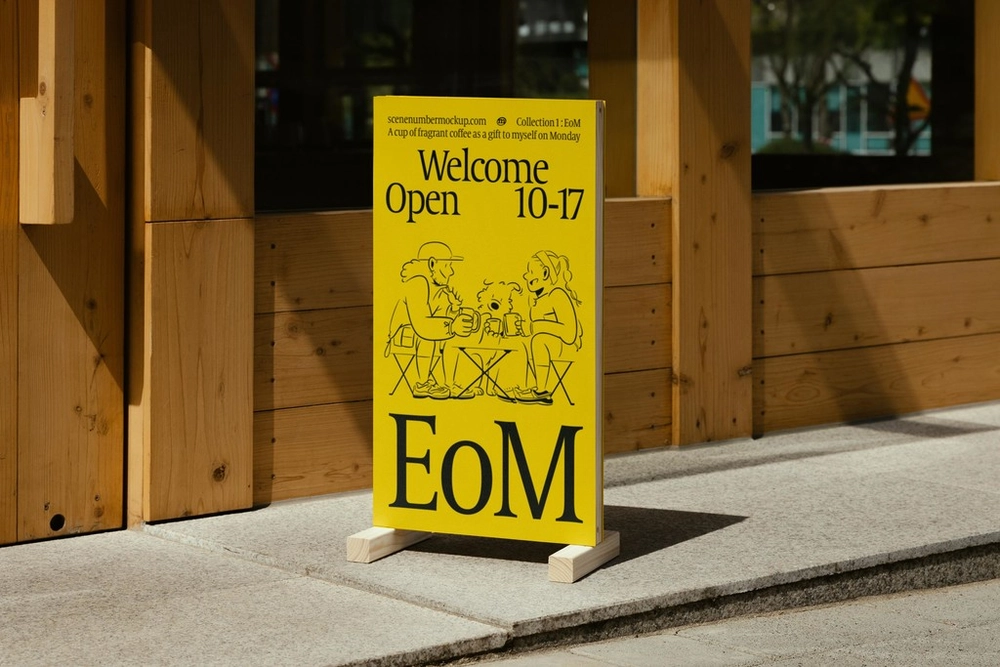 This S#1 EoM Sign Mockup is available as a layered PSD file and is easy to customize. You can insert your design through the embedded Smart Object and adjust the sign board color.