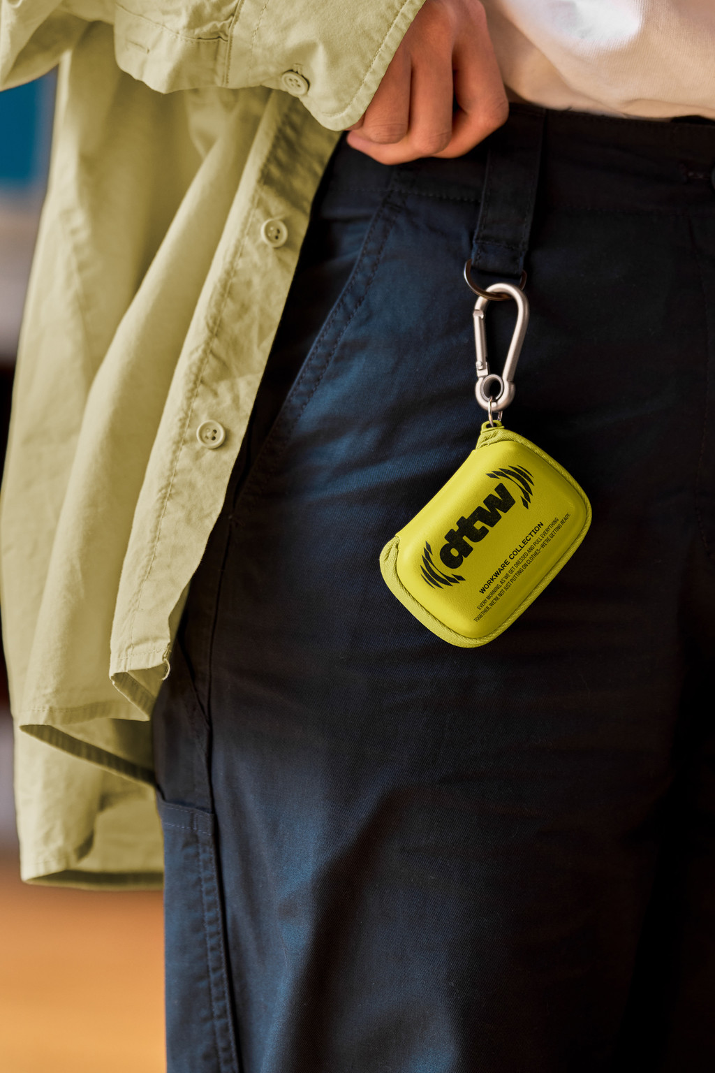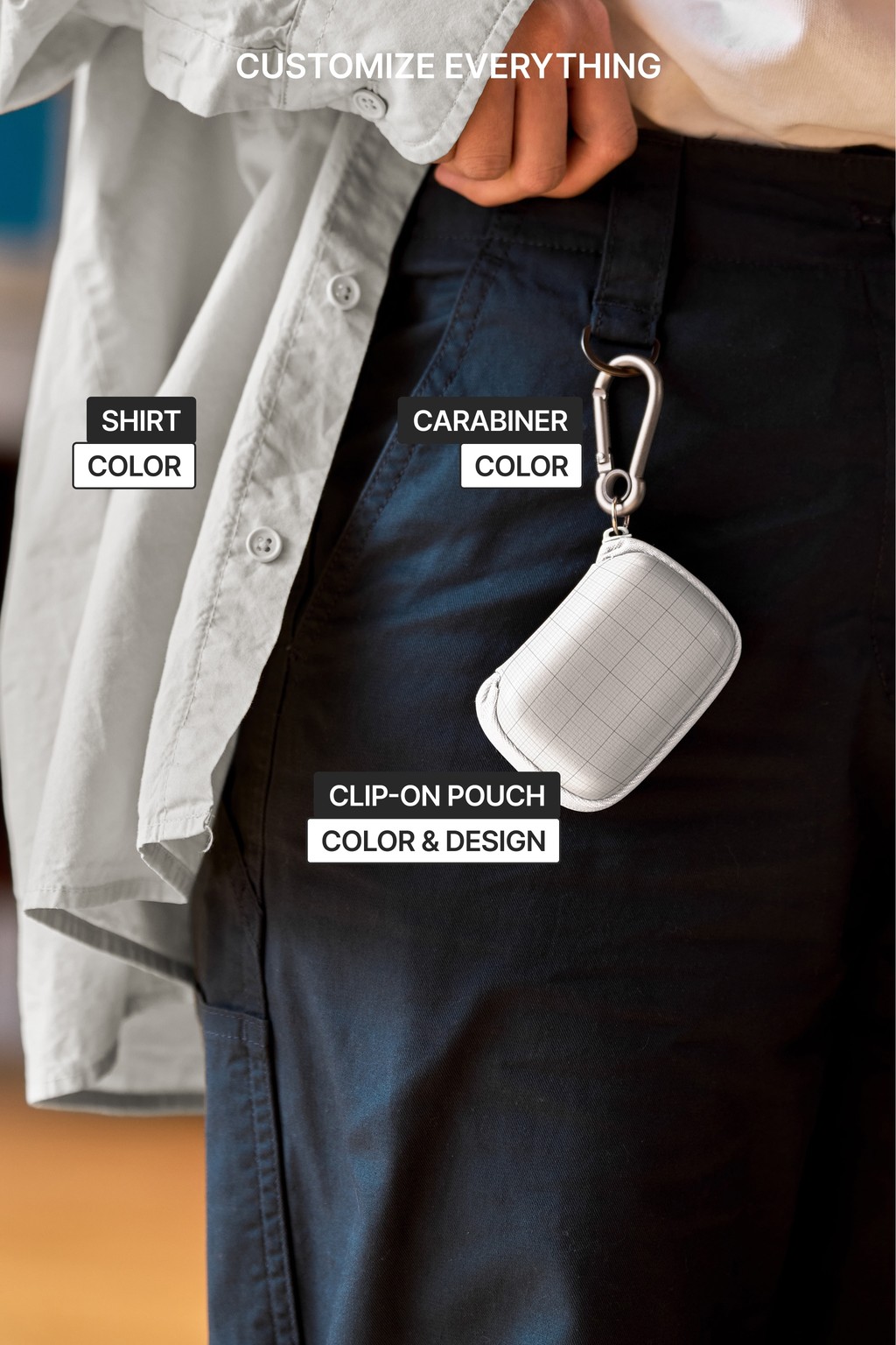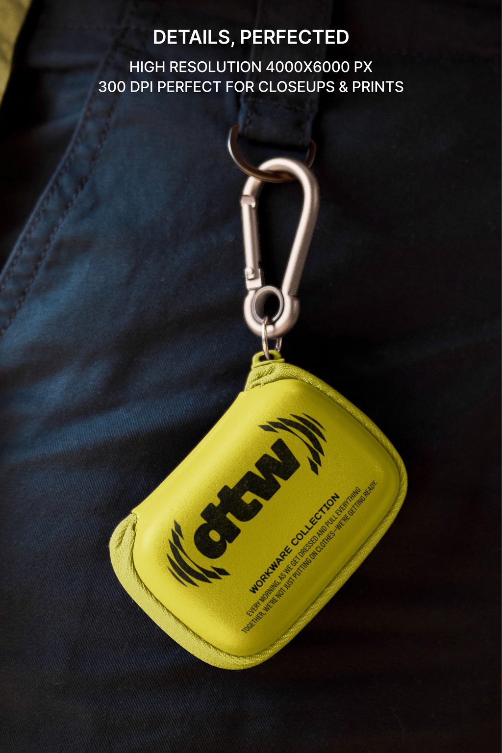This S#2 DTW Clip-On Pouch Mockup is available as a layered PSD file and is easy to customize. You can insert your design through the embedded Smart Object and adjust the shirt and carabiner color.