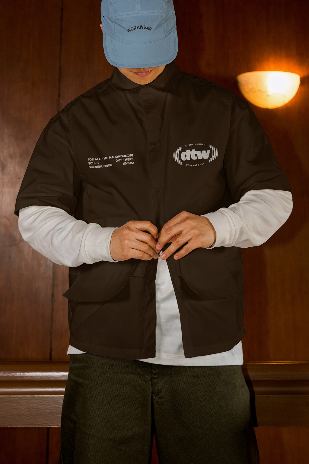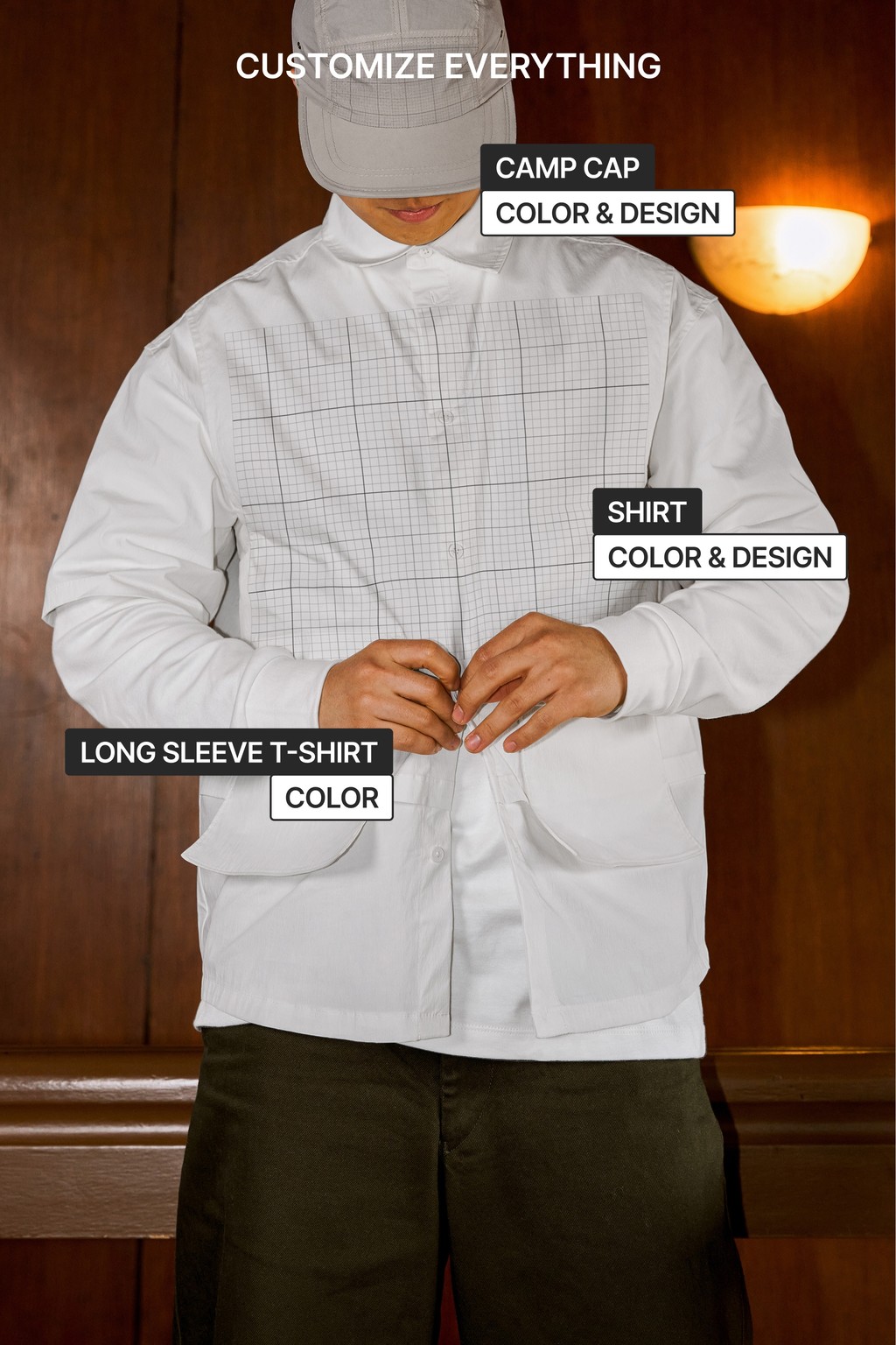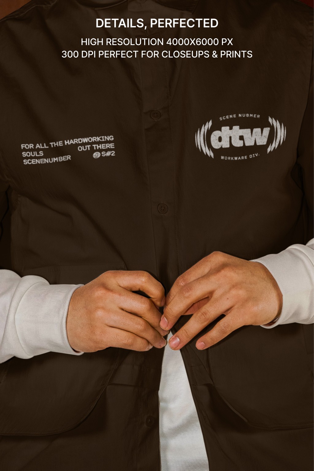 This S#2 DTW Shirt 02 Mockup is available as a layered PSD file and is easy to customize. You can insert your shirt design and camp cap design through the embedded Smart Object and adjust the colors of the long-sleeve t-shirt.