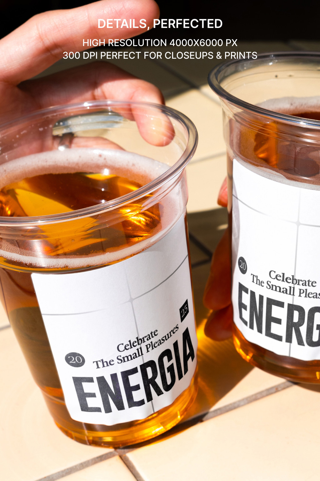 This S#3 NRG Plastic Glass 06 Mockup is available as a layered PSD file and is easy to customize. You can insert your label design through the embedded Smart Object and adjust the colors of the tile.