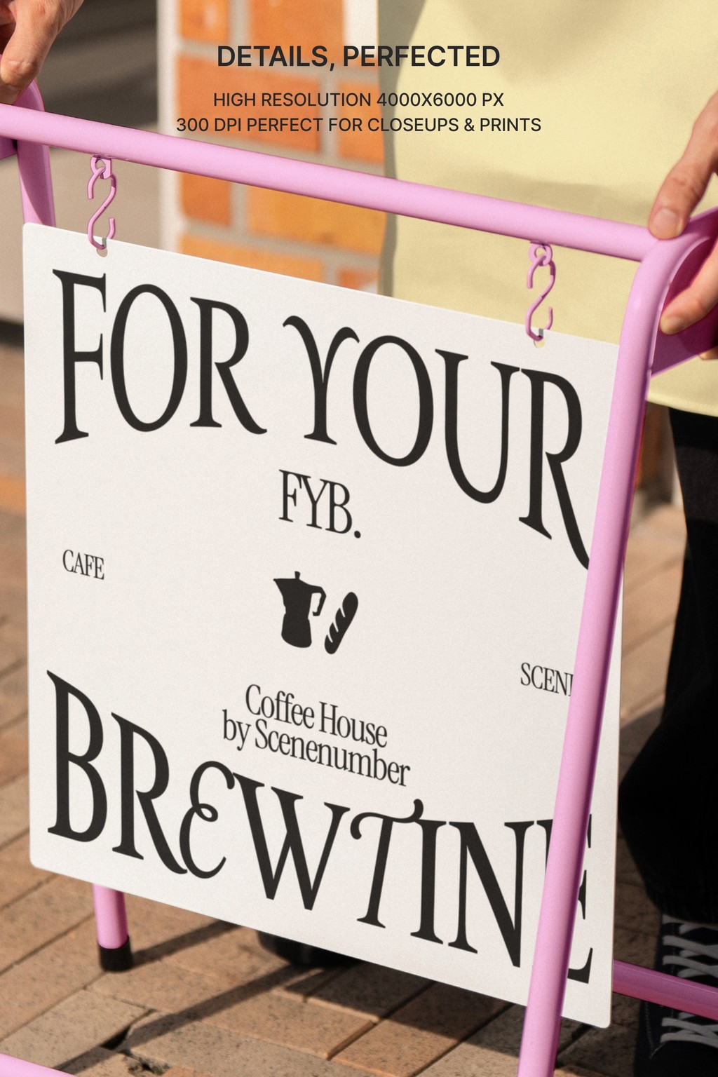 This S#4 FYB Sign 02 Mockup is available as a layered PSD file and is easy to customize. You can insert your sign panel design and cap design through the embedded Smart Object and adjust the sign frame color, apron color.
