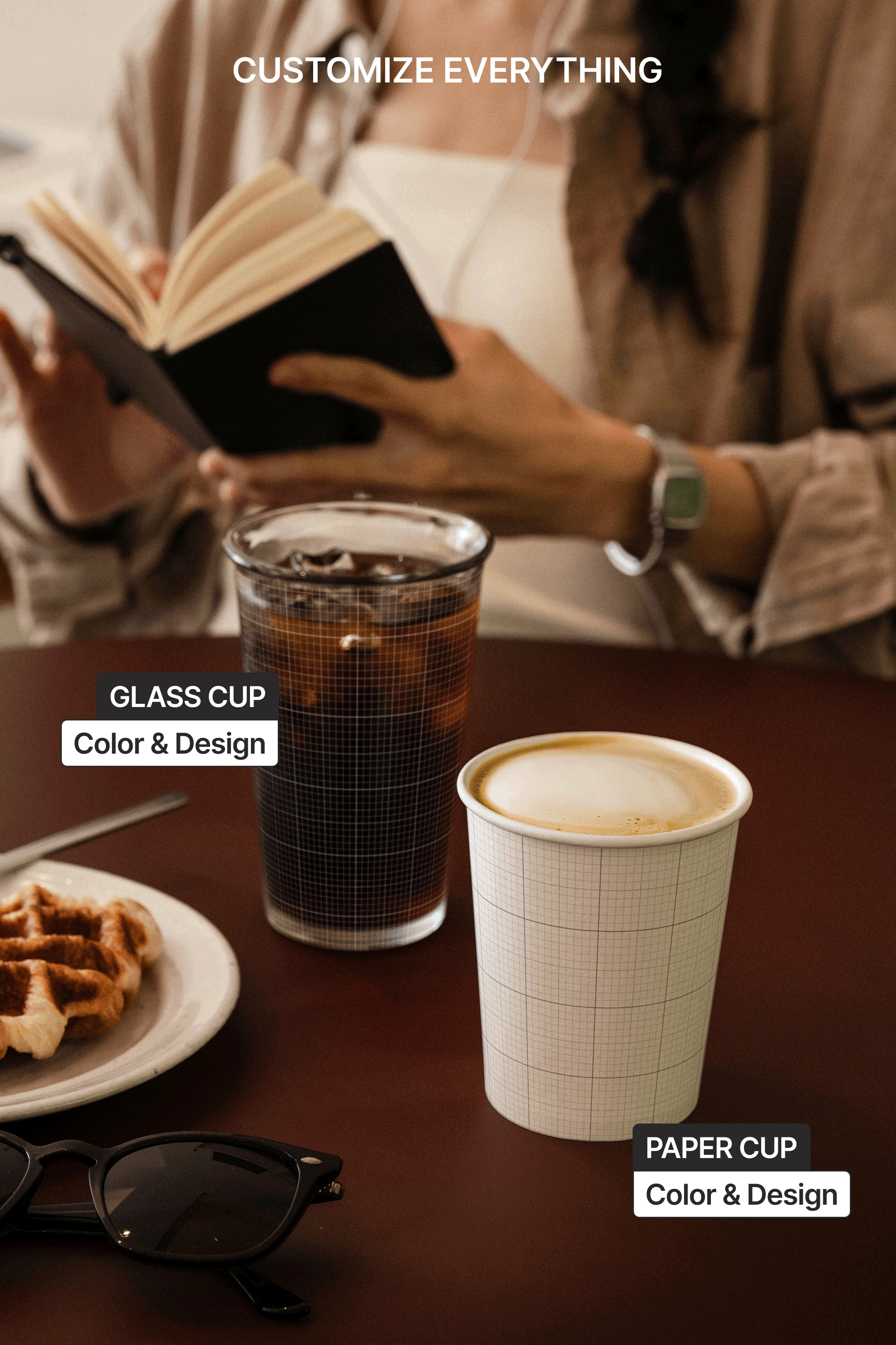 This S#4 FYB Paper Cup 06 Mockup is available as a layered PSD file and is easy to customize. You can insert your paper cup design and glass cup design through the embedded Smart Object and adjust the color.