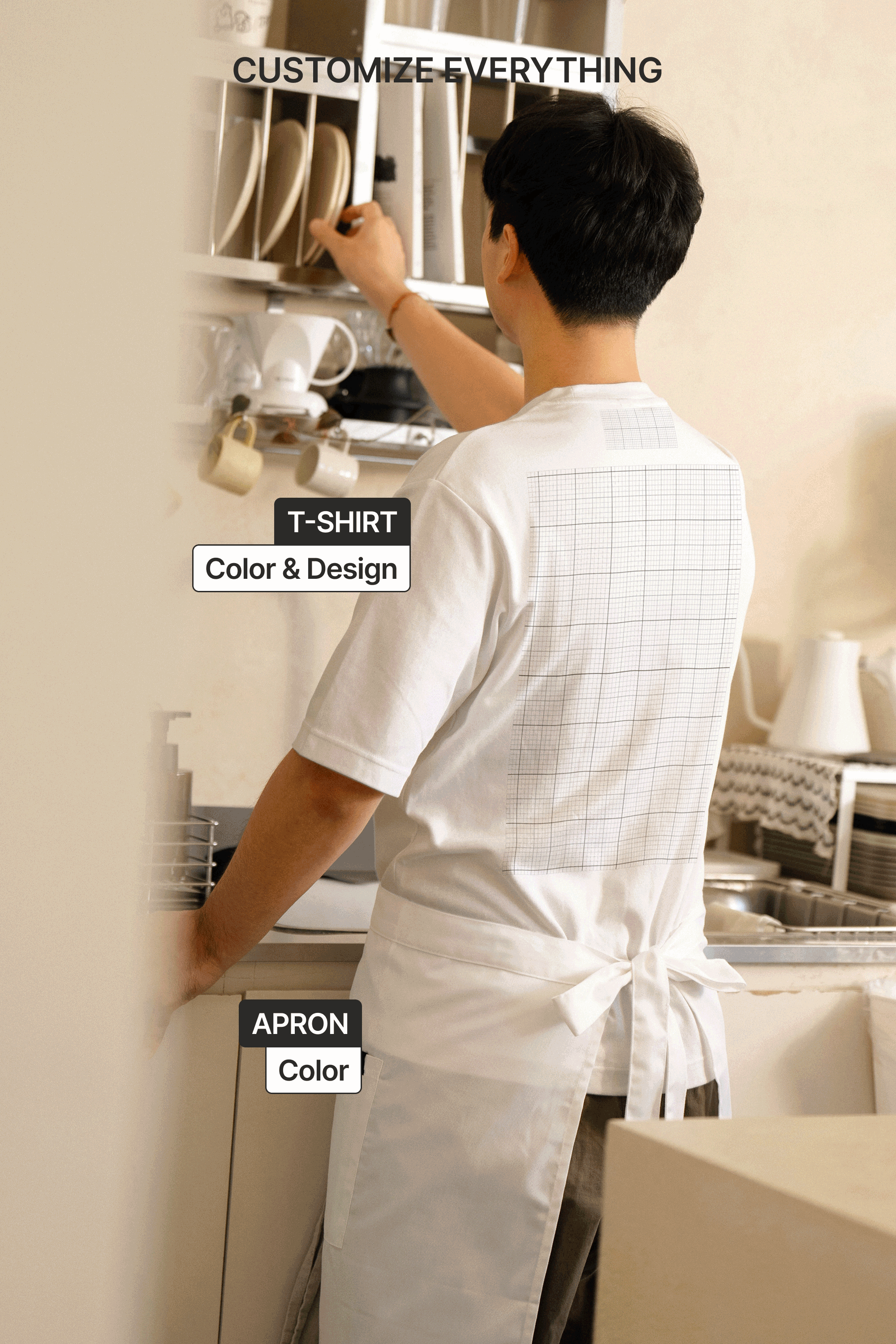 This S#4 FYB T-Shirt 01 Mockup is available as a layered PSD file and is easy to customize. You can insert your t-shirt design through the embedded Smart Object and adjust the apron color.