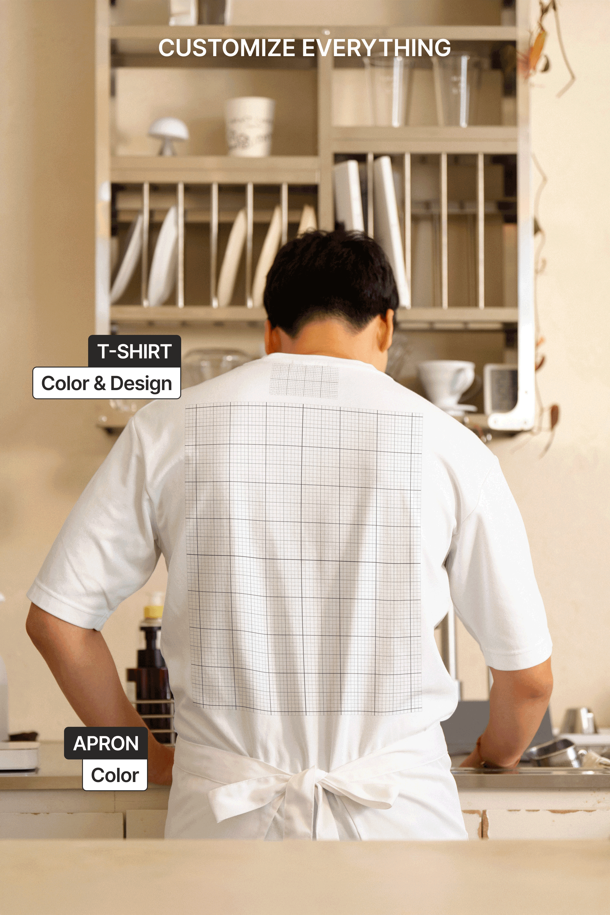 This S#4 FYB T-Shirt 02 Mockup is available as a layered PSD file and is easy to customize. You can insert your t-shirt design through the embedded Smart Object and adjust the apron color.