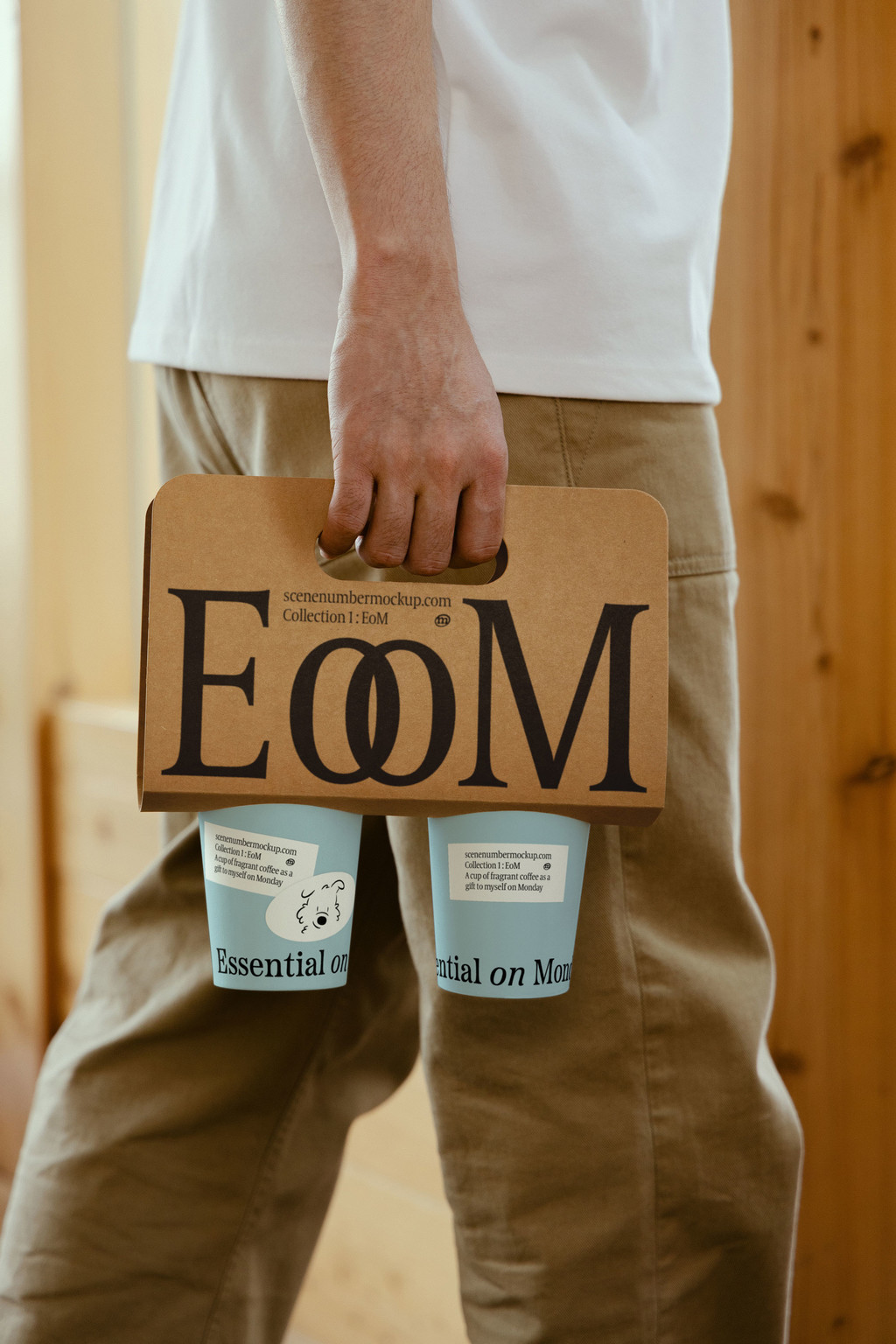 This S#1 EoM Coffee Holder Mockup is available as a layered PSD file and is easy to customize. You can insert your coffee holder design and cup design through the embedded Smart Object and adjust the coffee holder color and the cup color.